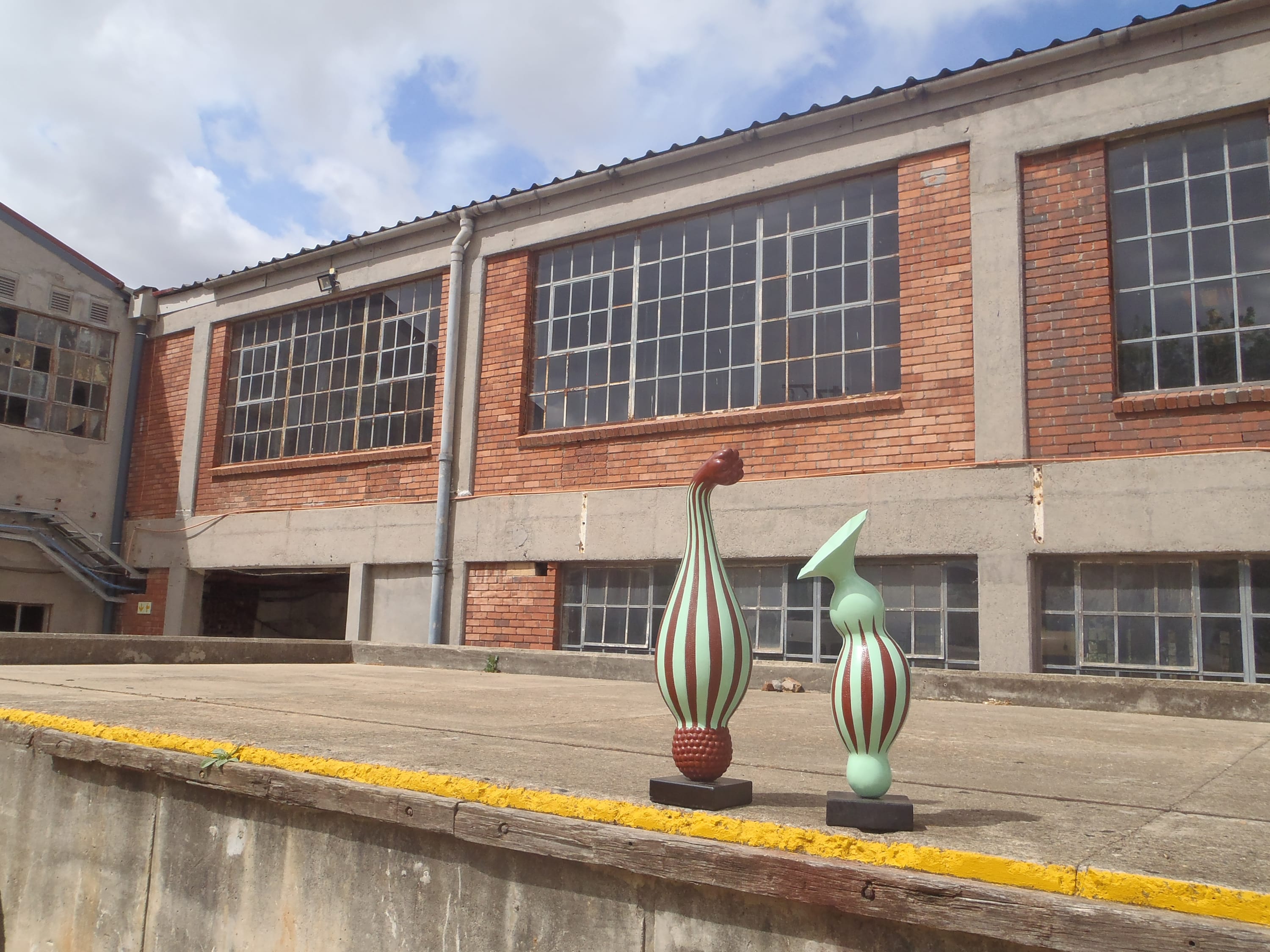 A joint exhibition with painter Nicolaas Maritz in 2009 included various masked and winged figures as well as figures dealing with social satire. All these sculptures were made of woven bark, with metal, skin, bone and wood.