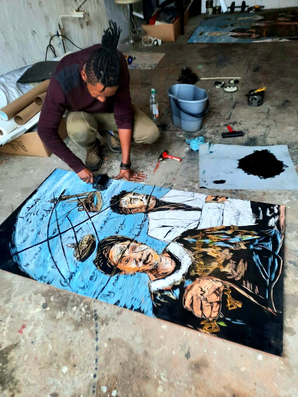 The body of work pushes me to honour all the African children who migrated from different parts of the continent and are in other parts of the world. I will honour them with their respective countries’ iconic landmarks and historical buildings. I have done city scape and used the Joburg Towers in the past. In this body of work, I will be traveling through the continent in my mind. I will cover major cities and nations like the Goree Slave Island in Senegal, Ethiopia, the Cape to Cairo stretch, etc, in honour of the African child who goes out to battle like a soldier. They carry the ark. They understand their responsibilities.