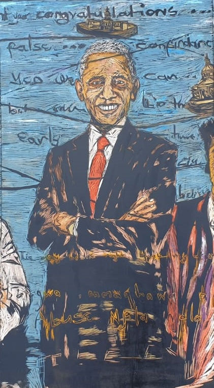 In this piece, you will notice that I have turned the crowns into iconic structures on each figure’s head. These structures represent the White House and world parliaments around the world. I am also happy that the work itself led me into global conversations that affect each and every one of us. This is something I have been opening up to over the past five years as an independent artist, to reach other audiences abroad.