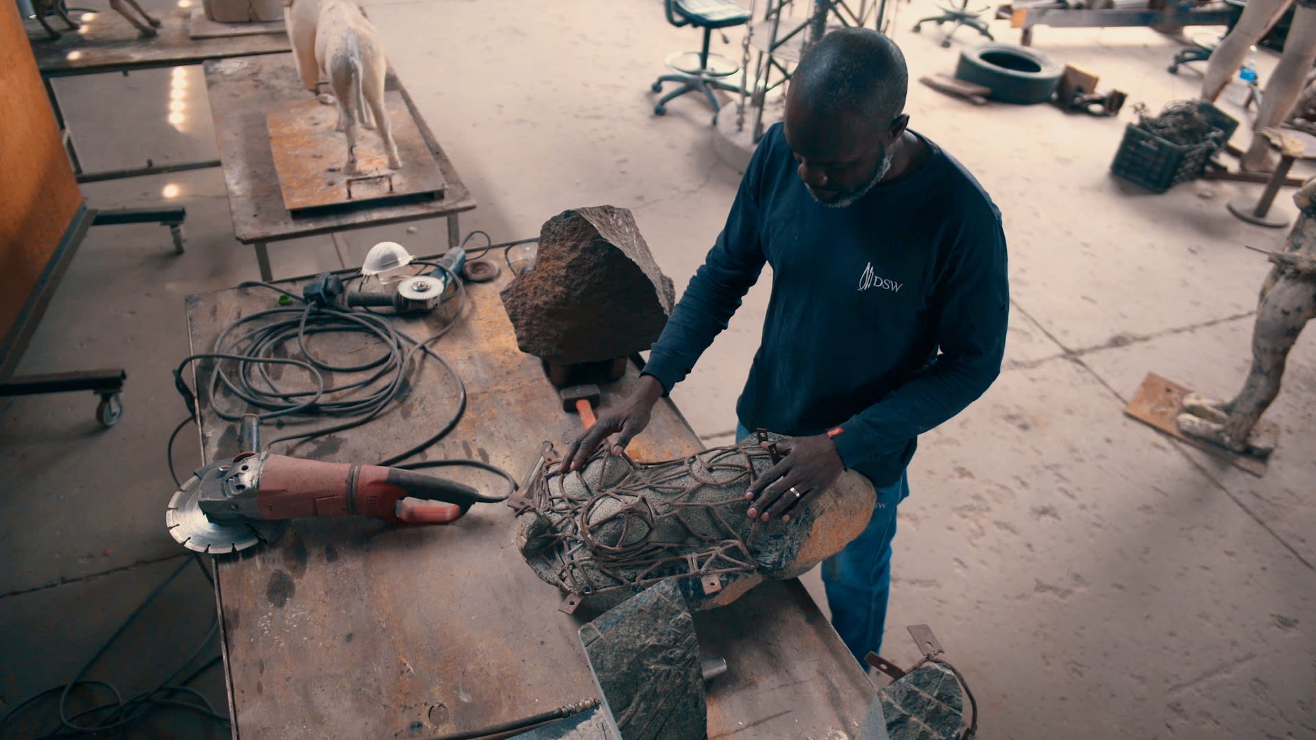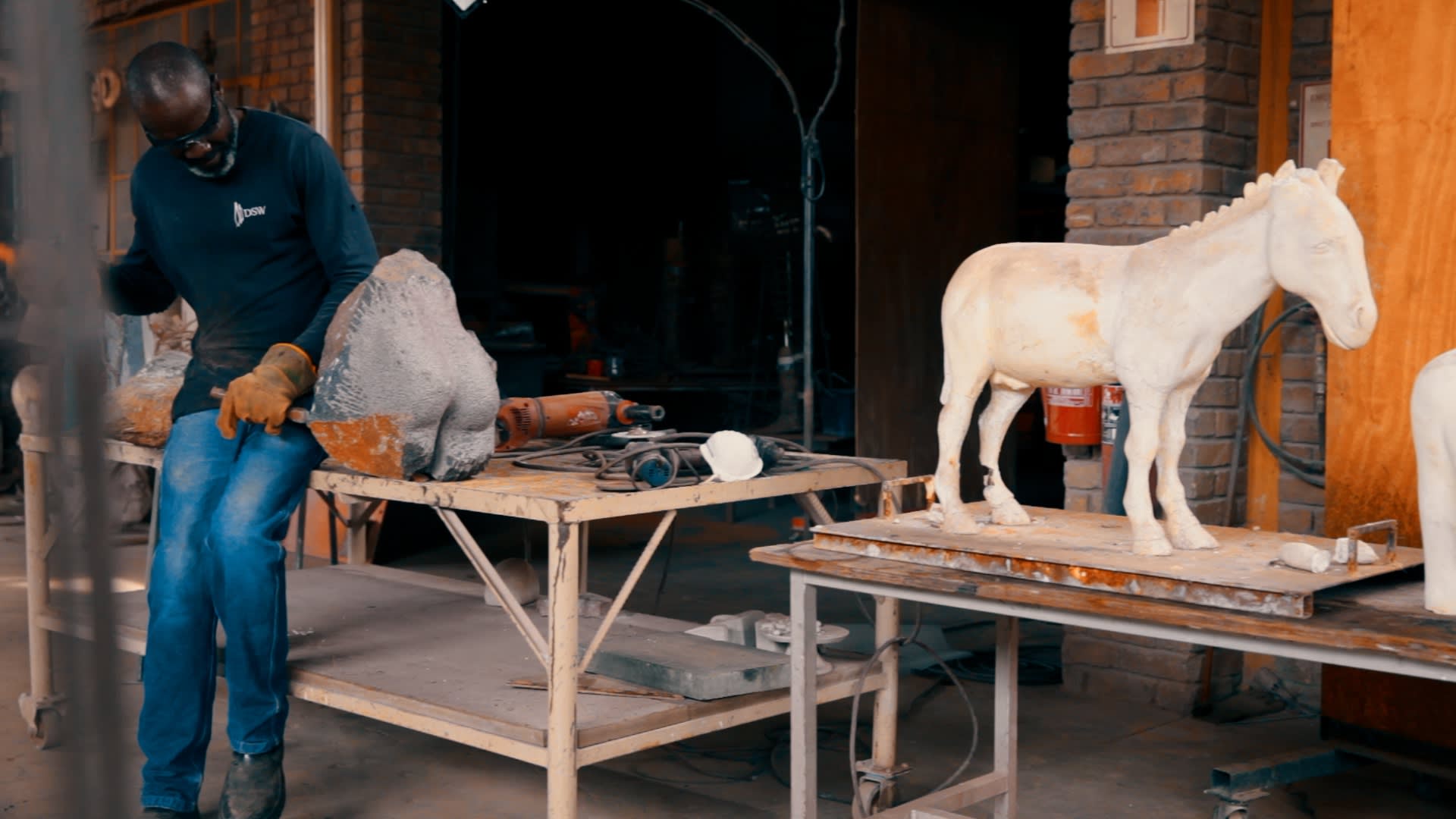 A master craftsman, specializing in stone, Zitha has worked with Angus Taylor at Dionysus Sculpture Studio & Foundry for 15 years where he holds the position of team leader in stone carving. The creative studio and foundry Dionysus Sculpture Works (DSW) was established by South African sculptor Angus Taylor in 1996. This creative space is constantly expanding, striving towards excellence and offering a notable contribution to the South African art scape.