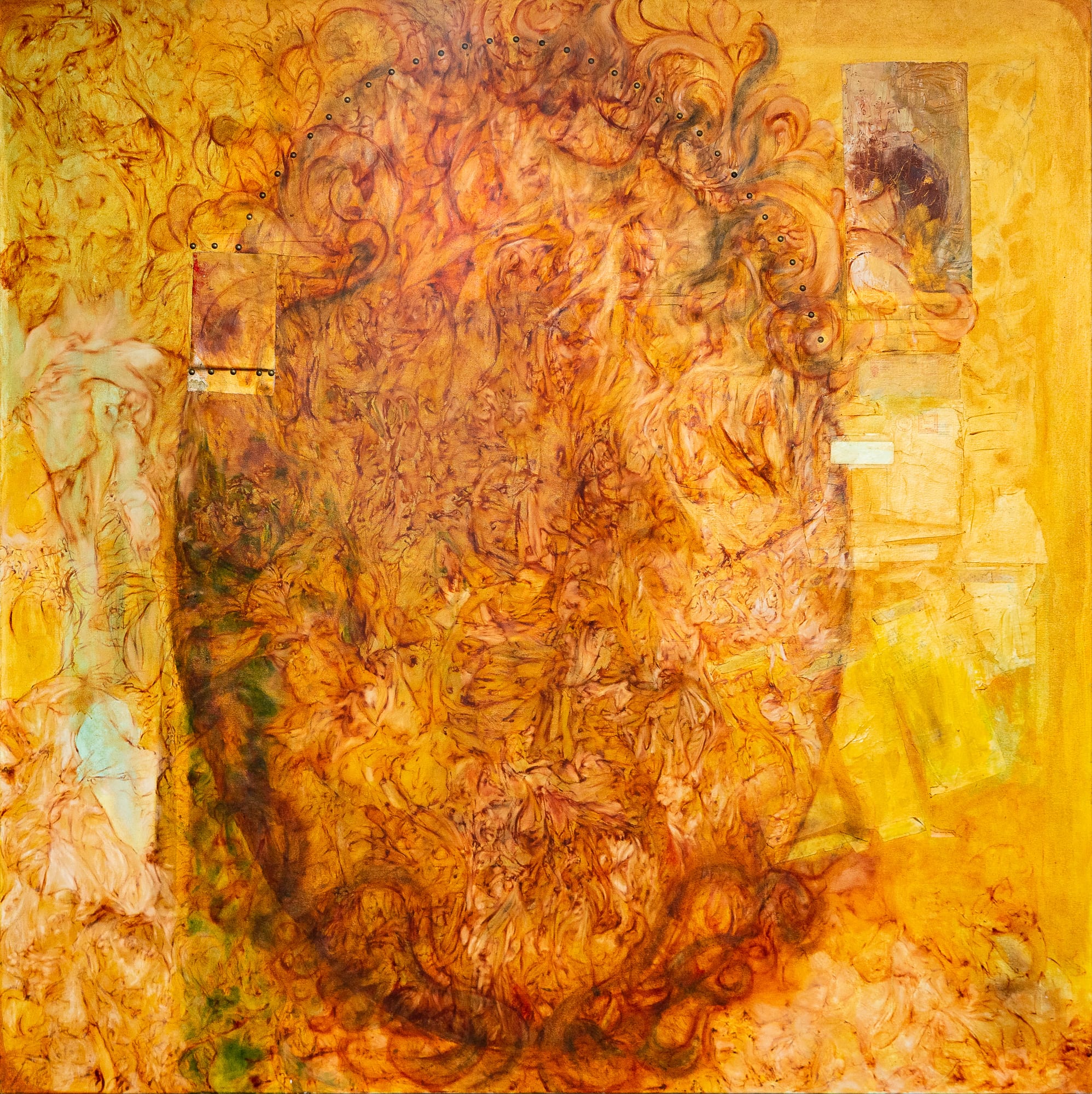 Portrait after portrait – Portrait I, II, III, IV, V (2019)– skin begins to look like flames of naples yellow tinged with crimson red and shadows of raw umber and ultramarine, licking the canvas and sending smoke trails of Payne’s grey rising. I think of the Biblical story when Moses stands before a burning bush, and Moses asks God for His name and God says, “I am who I am”. The bush is not consumed. As I stand before these flames in Lila’s works, I think of the lost and enslaved dancing around the empty idols after they have seen and been fed on the everyday sustenance of miracles. It is not Pharoah that has to let the people go – after all, Egypt is far behind and Pharoah and his might are long dead – but rather, as Roberta Flack says in her song Go Up Moses[3], “my people, let Pharoah go”. I think of celebrations in which people have commemorated marriages, births deaths and festivities. And I think of the image of Ernesto Alfabeto Nhamuave, the Mozamibiquan from the 2008 xenophobic violence, as he was consumed in flames exposing the shamefulness of racial-ethnic hatred that is secreted in our hearts. I think of stories of my own family in which women set themselves alight to escape lives of poverty, the smell of burning skin driving loved ones mad as it lingered in the air, on furniture and deep within noses. Or old Hindu rites of sati in which a widow would throw herself on the pyre of her dead husband, and, in doing so, demonstrated her marital faithfulness, and also conveniently provided a solution for the family inheritance to stay within it. I think of the way in which devotees sometimes show their religiosity by walking over coals of fire without feeling pain, of babies made to inhale the smoke of lighted camphors to clear their lungs, and stories told around fires of who we really are, and shisanyama flames across the world which feed friends and sustains livelihoods.