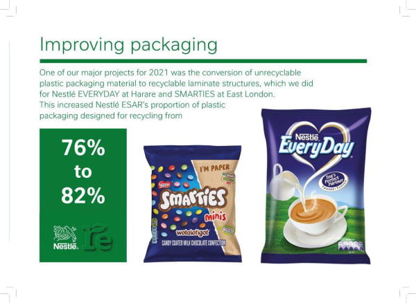 From Linear to Circular captures some of Nestlé ESAR’s sustainability journey, and reports back on the impact so far, of some flagship RE initiatives. It connects big audacious ideas about shifting society, with the simple circular principles that are a call to cation: REthink, REduce, REpurpose. In this work, is a snippet of what is possible for our continent as we ponder on the transition From Linear to Circular.