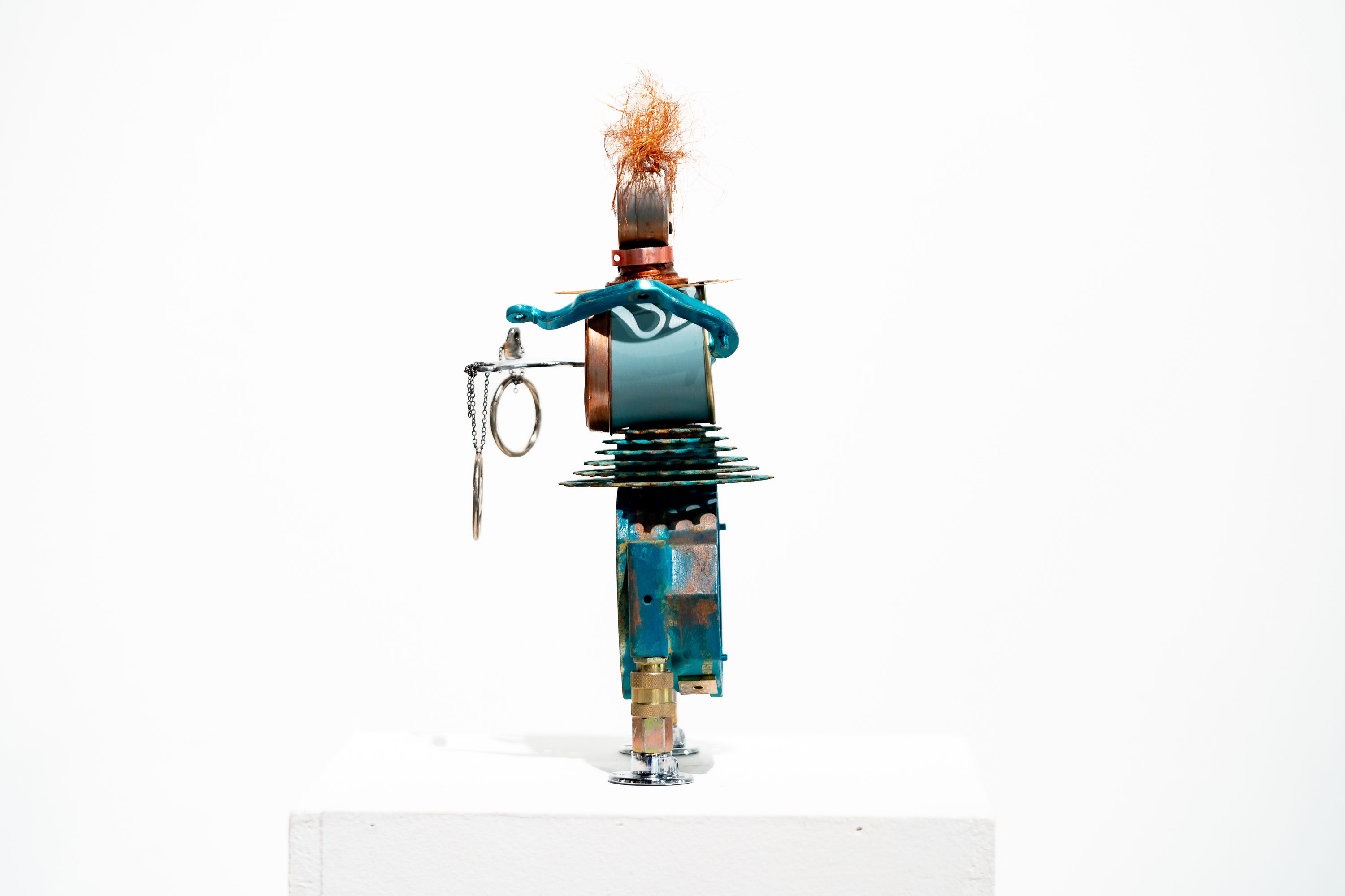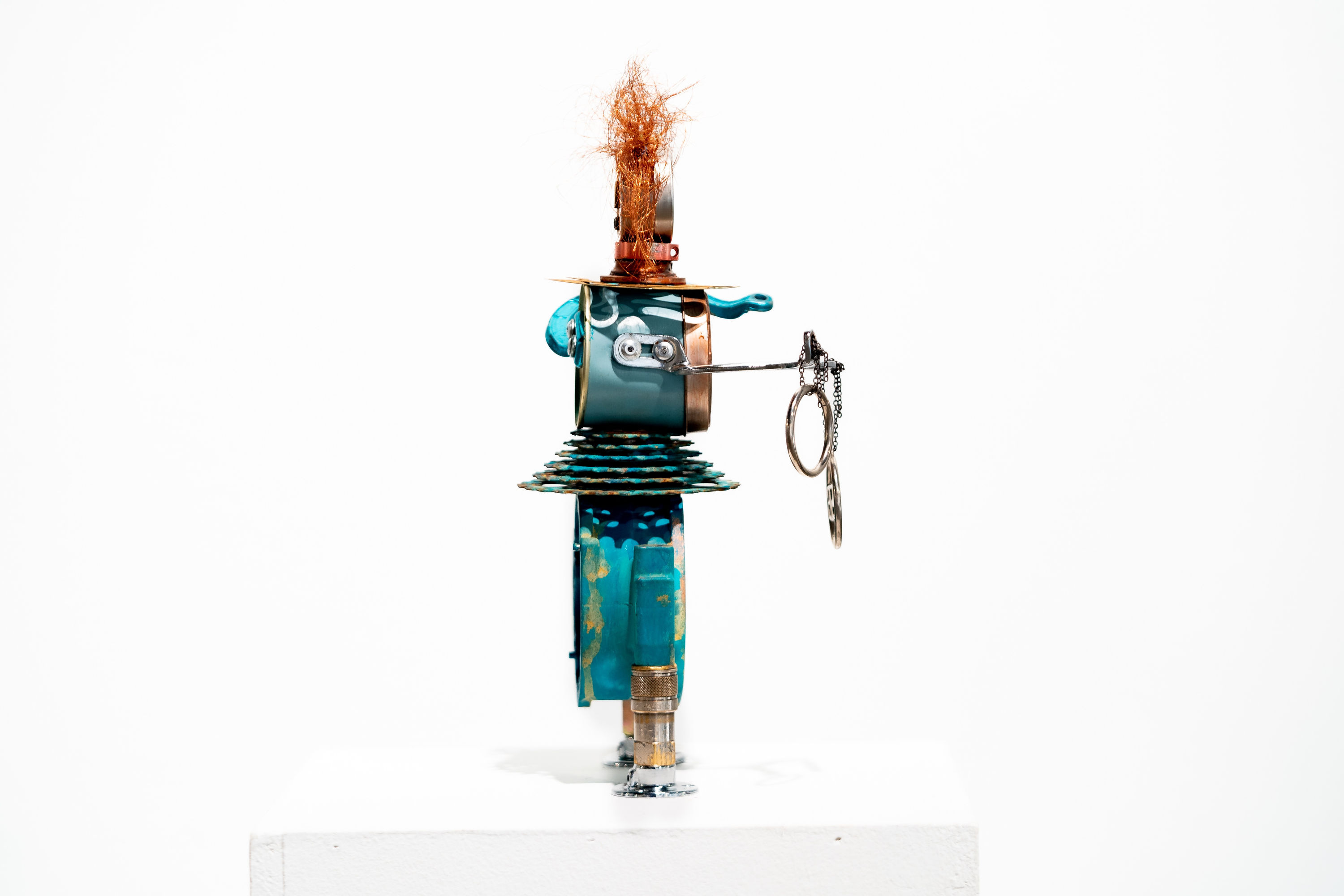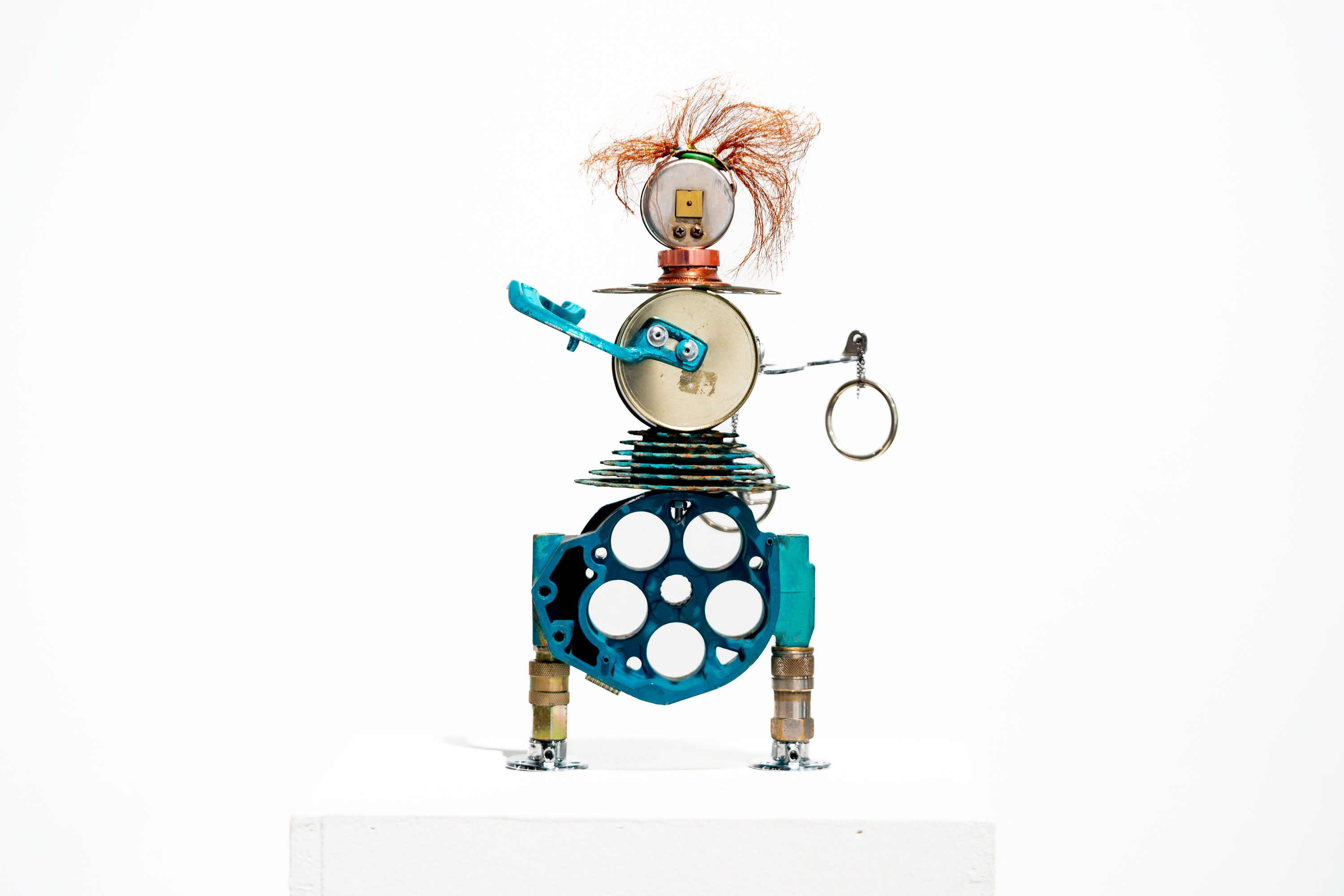 Johannesburg, South Africa. B: 1961Bercia Roos is a local artist who finds beauty and purpose in detritus and discarded items. Her career began as an interior decorator and fashion designer, and she continued creating three-dimensional art from discarded and pre-loved materials after completing her first recycled art figurine as a birthday gift for a special friend. From this artistic interpersonal connection, she discovered a world of debris at her fingertips. Roos explores rebirth and connections to the past through the repurposing of junk and scrap from various sources, from found objects in the world around her to her husband's workshop and Johannesburg's salvage yards. Through her creative vision, she channels the ethos that one person’s trash could be another’s treasure.