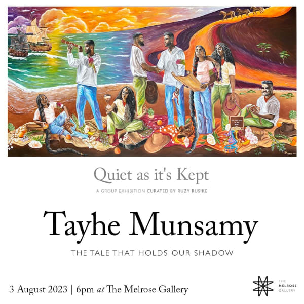 Tayhe Munsamy was born and raised in Johannesburg, South Africa. She attended Goldsmiths University of London where she studied Fine Art and History of Art. During her time in London her practice evolved to showcase works within the realms of speculative thinking, fiction, mythology and folklore. Her practice weaves together her identity as a mixed-race woman and explores elements from the Coloured and Indian communities in South Africa. Storytelling that combines cultural specificity and historical archives with fictional features are evident in her work in written and visual forms – paintings, video, performance, and digital media – to unveil themes of construction, displacement, transformation, and fantasy in relation to notions of the self. Tayhe obtained her BA in Fine Art and History of Art from Goldsmiths University of London in 2020. She graduated with a First-Class Honours. In 2021, Tayhe was selected for the RMB Talent Unlocked mentoring program and group show at Everard Read CIRCA Gallery in Johannesburg in association with Strauss & Co South Africa. She continues to showcase her artworks in group shows around South Africa and internationally. Tayhe is currently based in Johannesburg, South Africa