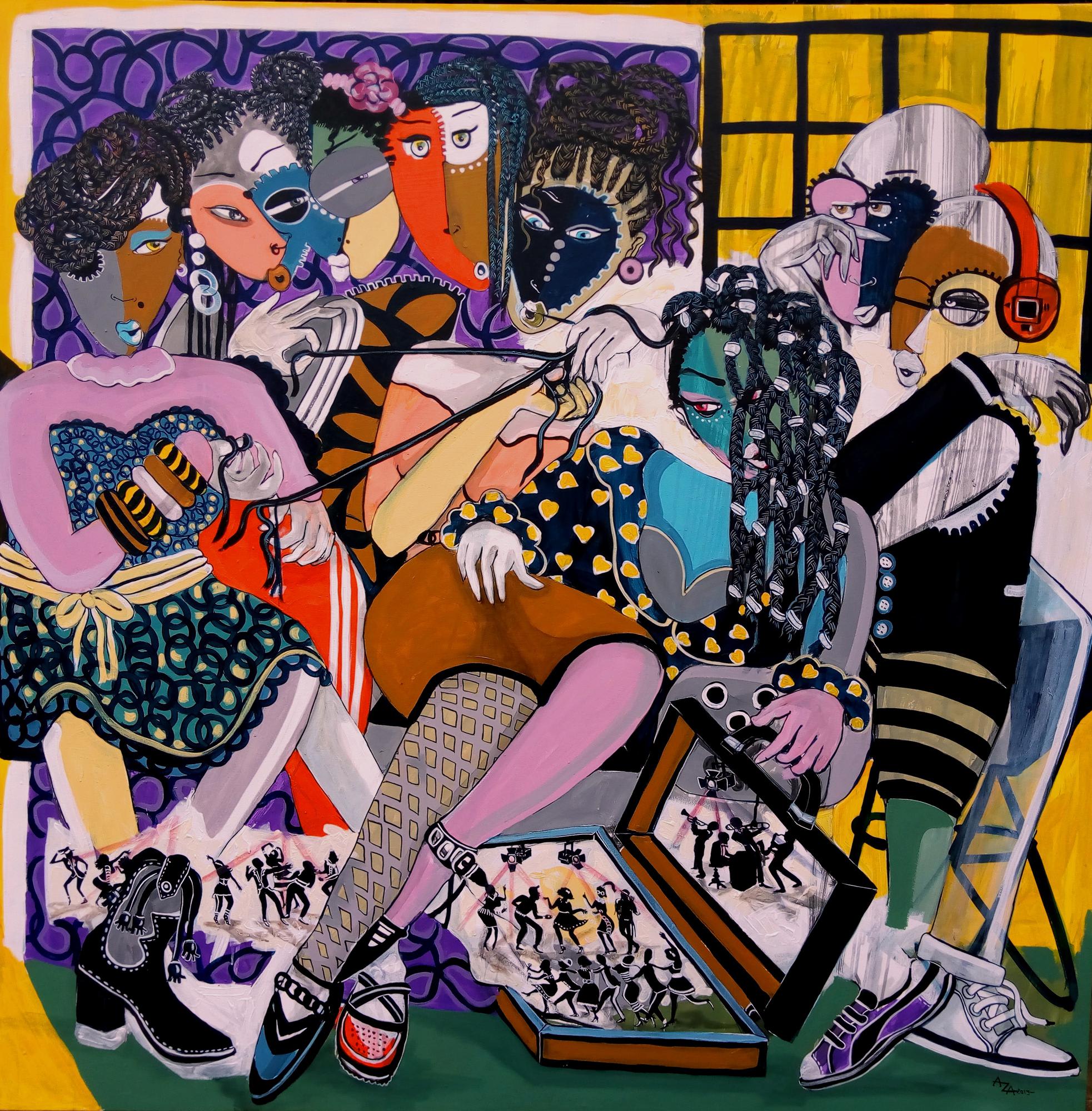 CongoAza Mansongi’s Congolese background schooled her in classical, figurative realism. But her life experience growing up in the Democratic Republic of Congo, an area massively impacted by war and conflict, to her studies and current life in Douala in Cameroon and her innate positivity has given her artworks a unique ‘Aza’ style. Whilst Aza could have been forgiven for creating artworks filled with angst and negativity this would have conflicted with the positive way in which she approaches life and all that she does.